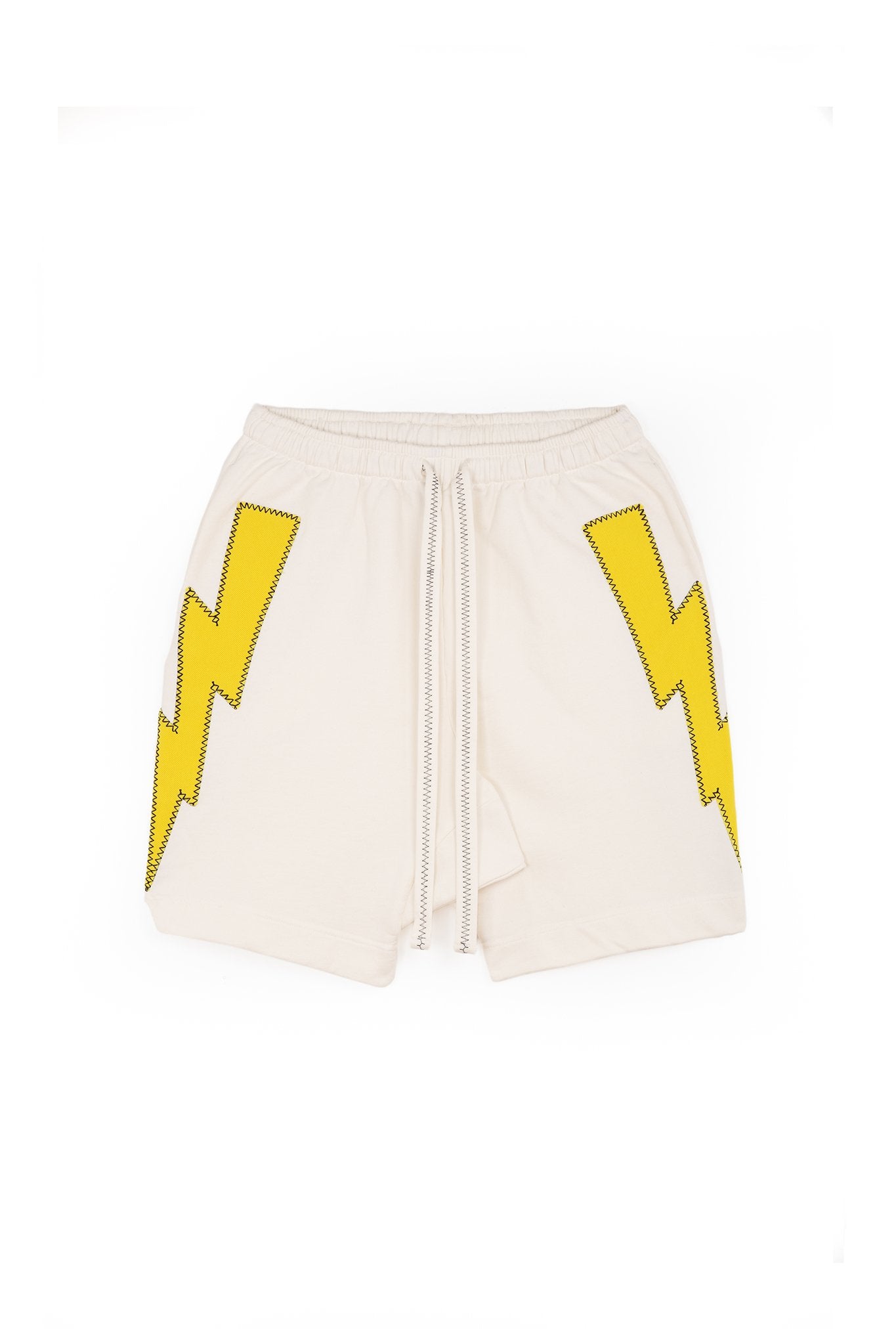 From the stitching to the embroidered lightning bolts on these shorts, the idea here was to create a transcendent piece of clothing that would be so specific, for a piece that often isn't taken so seriously. Shorts to me about good times, going outside, seeing friends, DOING THINGS. These were a meditation on what do you like to do? Whatever that is, wear these, go and do that something.