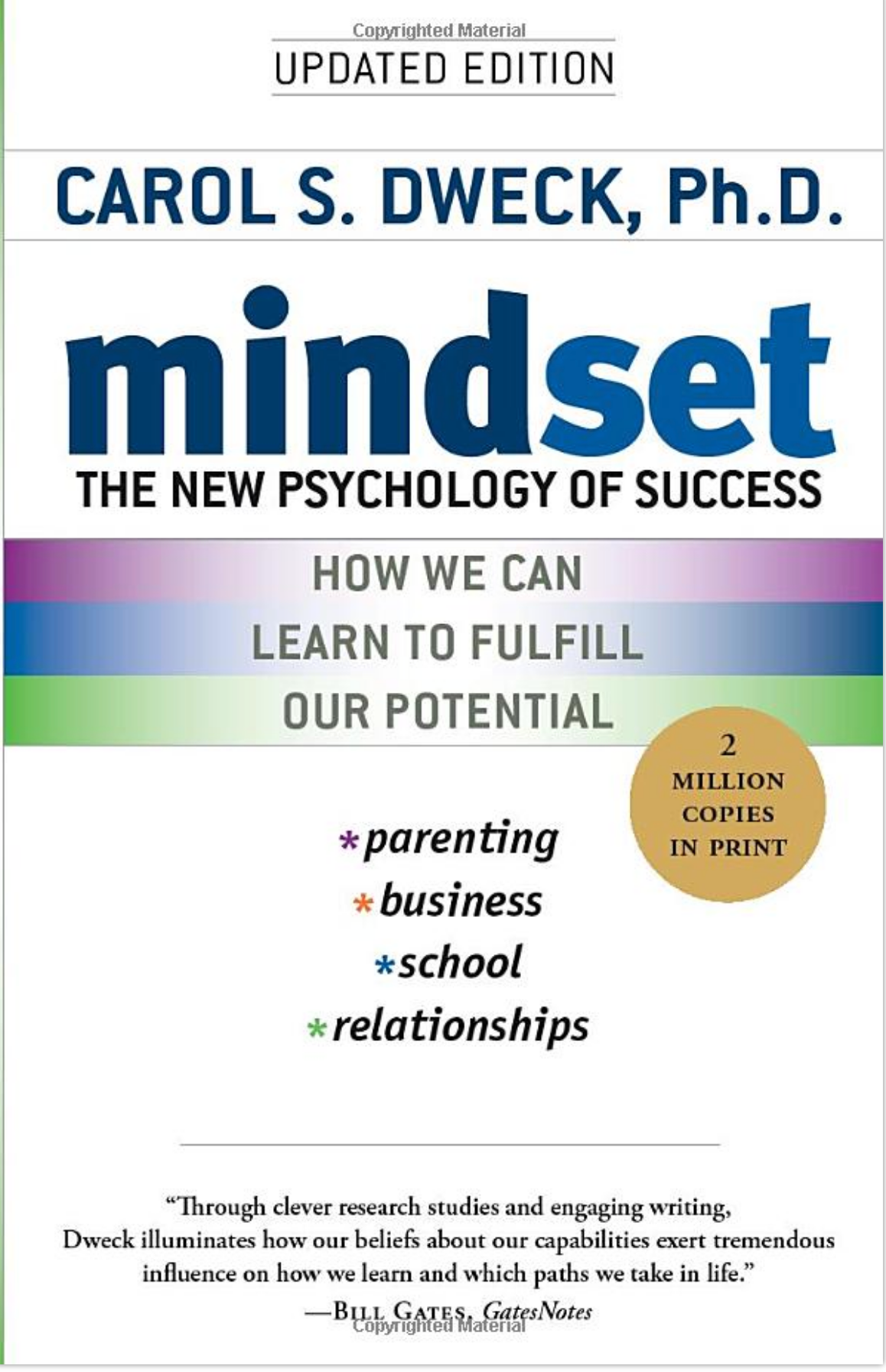 “Through clever research studies and engaging writing, Dweck illuminates how our beliefs about our capabilities exert tremendous influence on how we learn and which paths we take in life.”—Bill Gates, GatesNotes