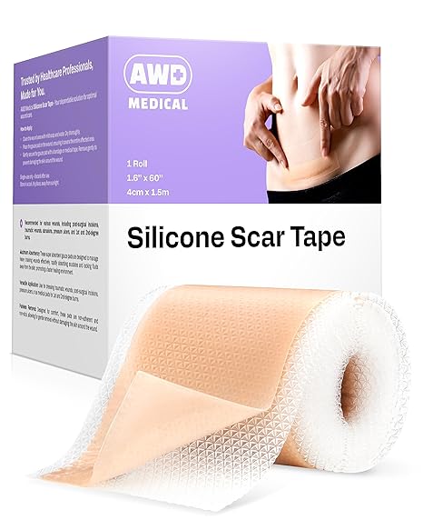 SURGERY RECOVERY: AWD Medical silicone scar sheets are ideal for surgical, C-section, and acne scars. They reduce itching, redness, and discomfort by mimicking the skin's natural barrier, providing protection and stability.